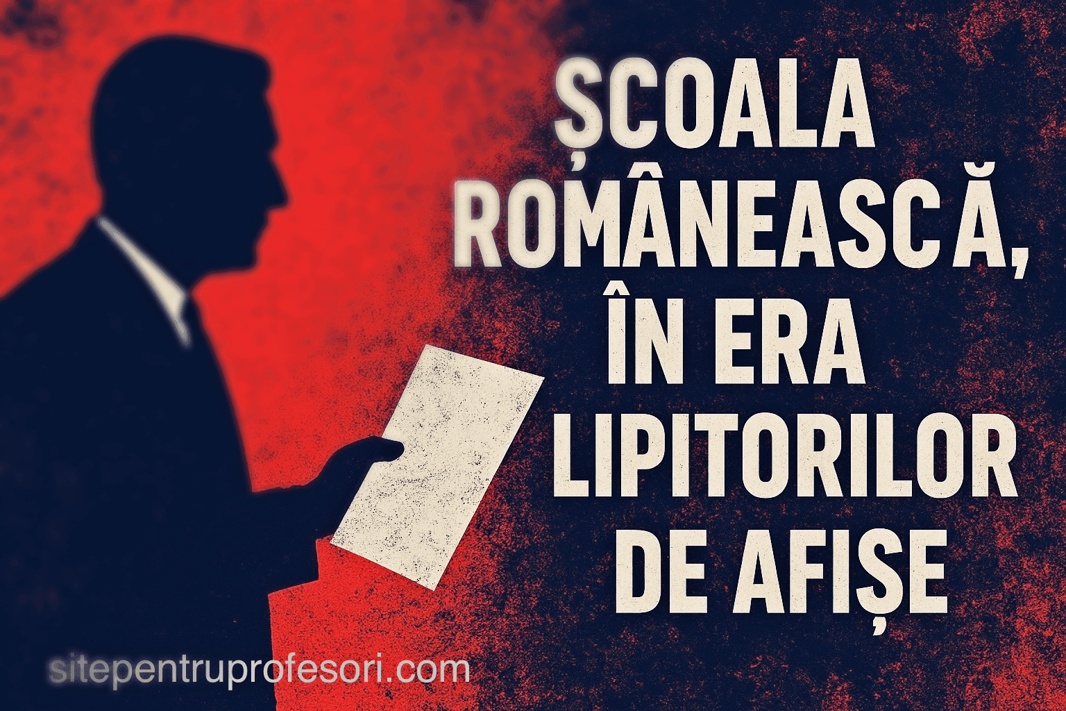 Și uite așa, pe nepusă masă, apare noua specie: profesorul lipitor de afișe. Viitorul său nu depinde de rezultate sau respectul comunității, ci de câte afișe lipește, câte postări laudative face, cât de rapid și eficient închide ochii și cât de disciplinat stă în rând cu „echipa” politică a primarului și directorului. Profesorul devine mai mult soldat electoral decât dascăl. Orice urmă de independență și împotrivire va fi taxată iar pedeapsa va servi drept exemplu pentru alții.